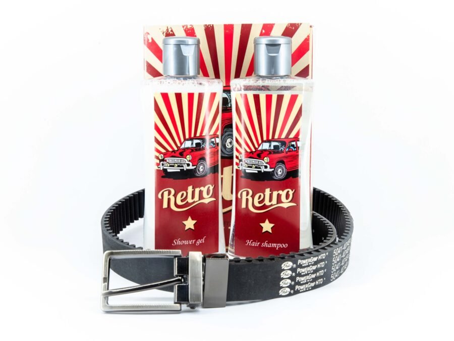 Ieškai unikalios dovanos draugui ar mylimam žmogui, kuris dievina viską, kas susiję su automobiliais? Šį dovanų rinkinį sukūrėme būtent tau! Diržas, pagamintas iš perdirbto variklio diržo, kartu su dušo geliu tepalo taroje yra unikali kombinacija, kuri privers juoktis išpakavus.
