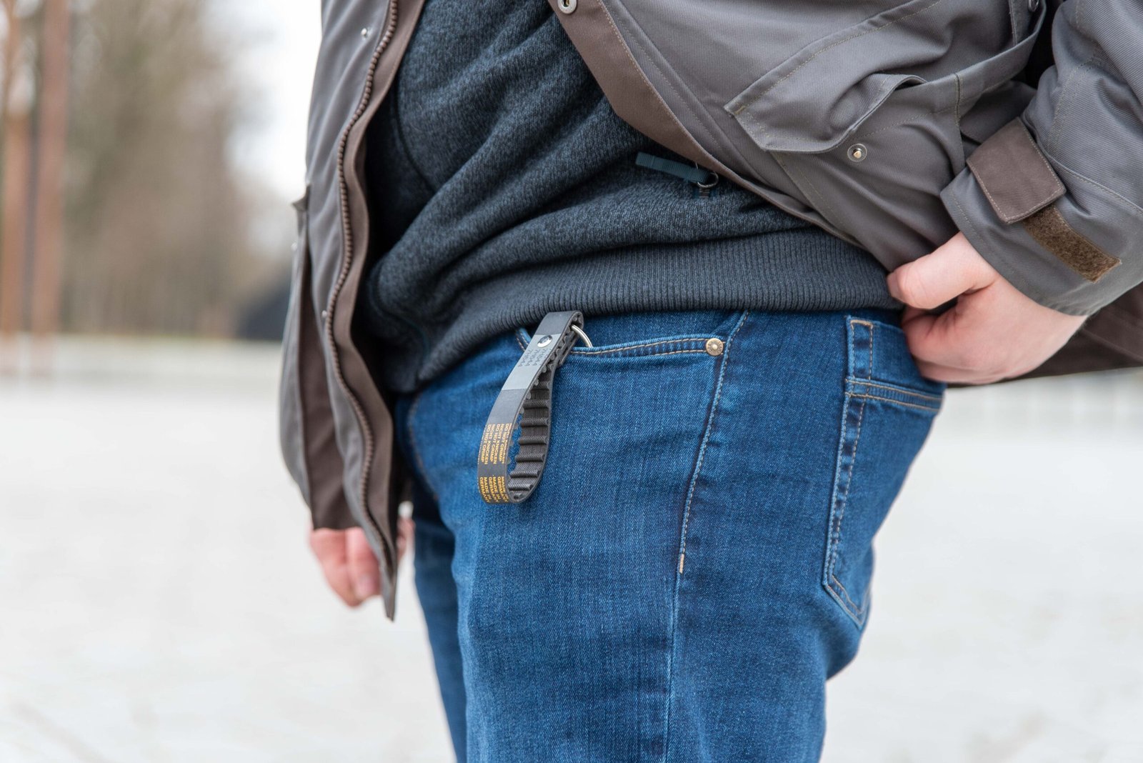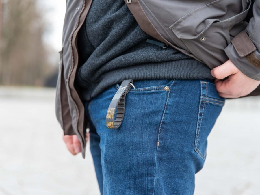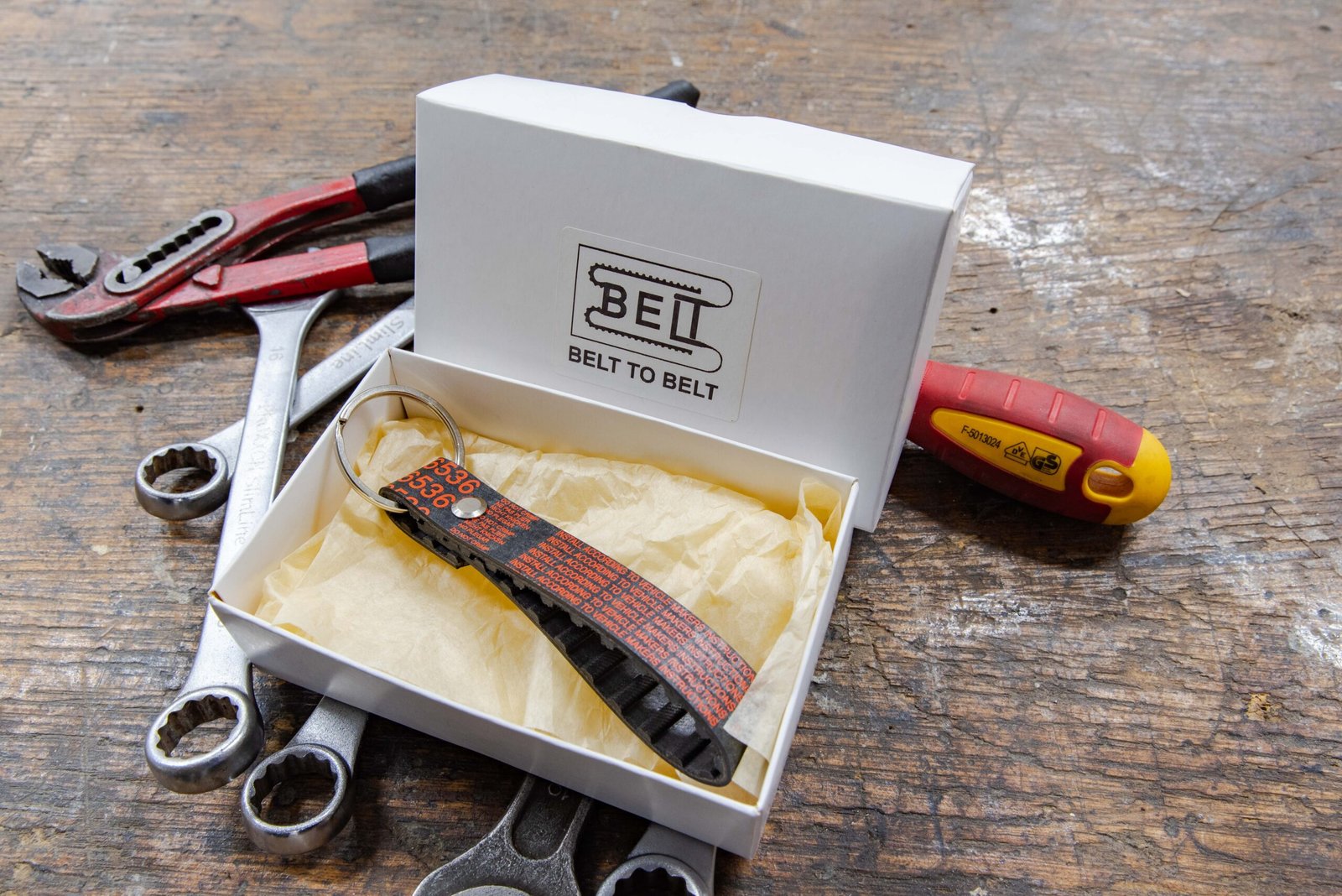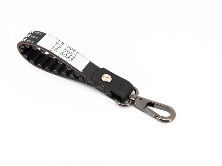 Pagamintas perpanaudojant variklio paskirstymo diržą, šis unikalus raktų pakabukas yra ir funkcionalus, ir stilingas. Jo patvari tekstūra atspindi įsipareigojimą tvarumui, suteikdama tvirtą estetiką. Lengvas, bet tvirtas, jis užtikrina, kad jūsų raktai būtų visada po ranka. Šis aksesuaras puikiai tinka tiems, kurie vertina novatorišką dizainą ir praktiškumą kasdienėje veikloje.